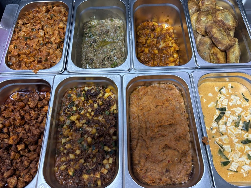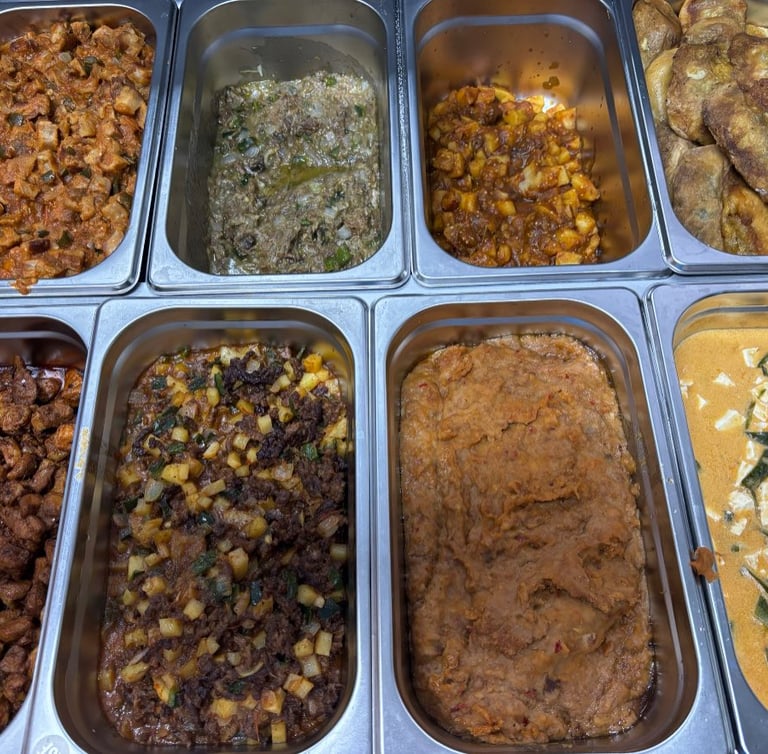 (3 huevos estrellados bañados en salsa de chorizo, acompañado de 1 guiso a elegir, frijoles y tortillas)